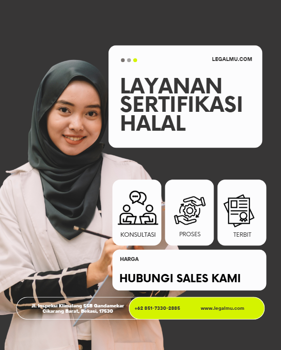 Legalmu.com menyediakan layanan pengurusan Sertifikat Halal lengkap (all in) dengan pendampingan penuh hingga sertifikat terbit. Seluruh proses mencakup biaya PNBP, penyelia halal, auditor halal, serta lembaga pemeriksa halal (LPH) — tanpa repot dan tanpa biaya tersembunyi. Estimasi waktu penyelesaian hanya 1 bulan kerja.