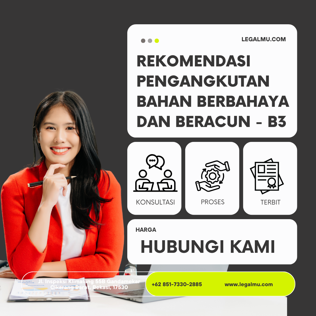 Legalmu.com menangani proses pengurusan rekomendasi pengangkutan B3 secara menyeluruh, mulai dari penataan dokumen hingga pendampingan sampai izin resmi diterbitkan. Klien cukup menyiapkan dokumen dasar, sementara seluruh proses administrasi, verifikasi, dan penyusunan berkas kami kelola sesuai standar kementerian. Pendekatan ini membuat perusahaan tidak perlu menghadapi kerumitan regulasi dan dapat fokus pada operasionalnya.